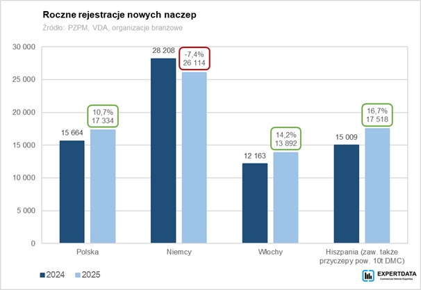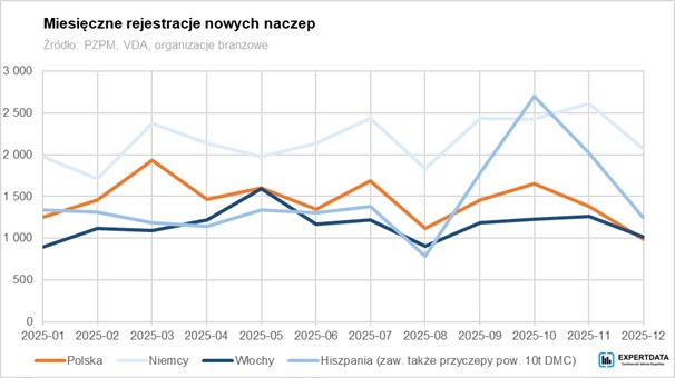 Rejestracje nowych naczep w Polsce i Europie w 2025 roku